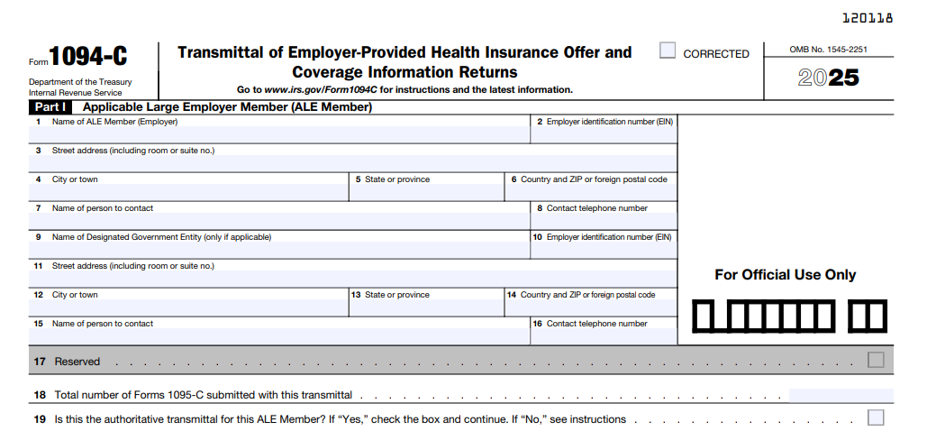 IRS Form 1094-C – Transmittal of Employer-Provided Health Insurance Offer and Coverage Information Returns – As the Affordable Care Act (ACA) enters its second decade, Applicable Large Employers (ALEs)—those with 50 or more full-time employees—face heightened scrutiny on health coverage compliance. IRS Form 1094-C, the Transmittal of Employer-Provided Health Insurance Offer and Coverage Information Returns, is the linchpin for reporting offers of minimum essential coverage (MEC) to full-time employees. For the 2025 tax year, with penalties rising to $340 per return and new relief on employee furnishing, accurate filing is non-negotiable to avoid assessments under Section 4980H.
